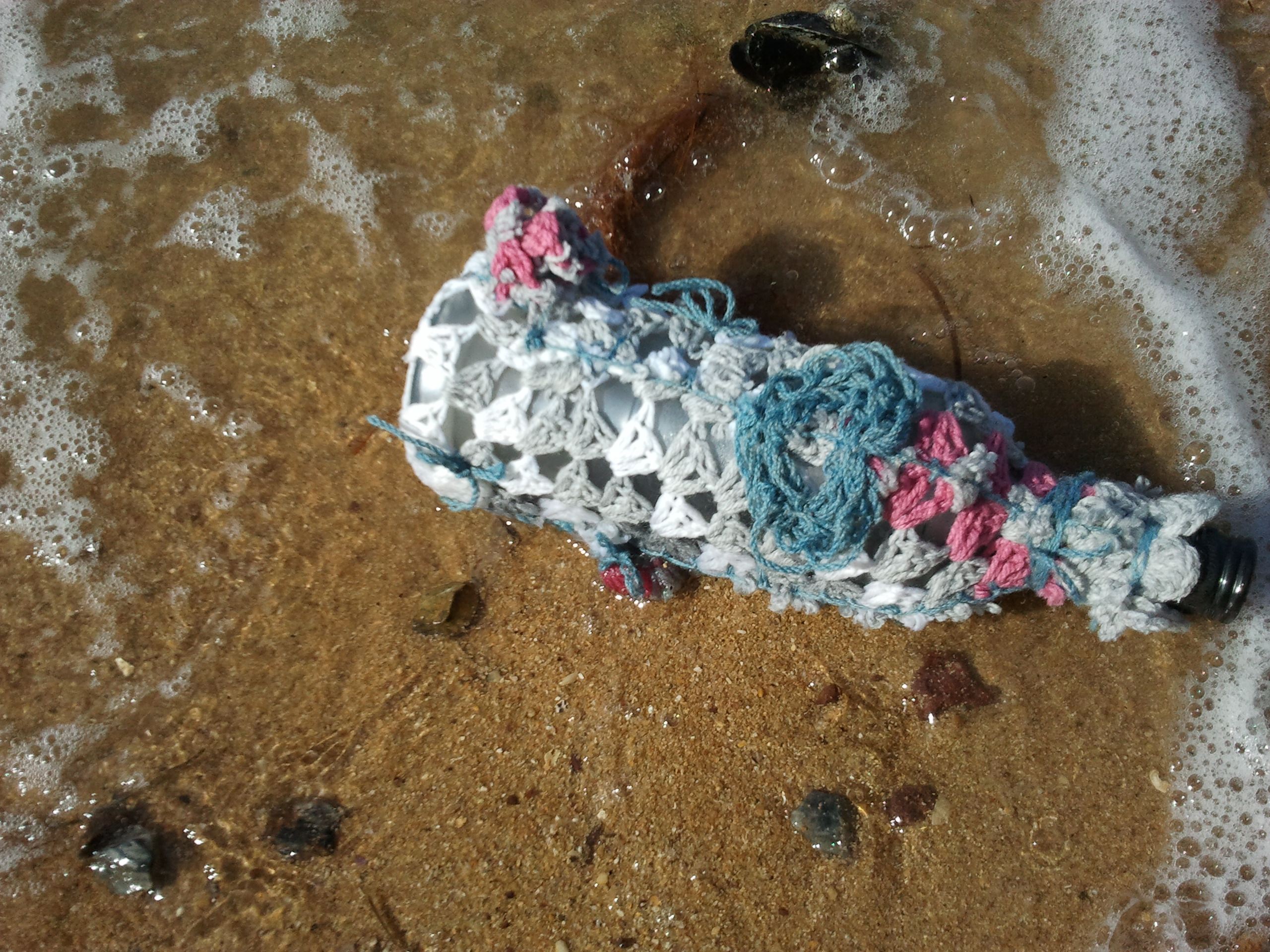 Welcome to Love Floats 4 Eva… A place where bottles of joy released on the high seas of the Southern Moreton Bay region infect the world with optimism and random fractal interactions of human kindness and affection. Littering has officially hit new altruistic and romantic heights!! Only heavy grade drank bottles of spirits are used, and cushioned from the harsh treatment of seaside rocks by blankets of crochet. Each bottle is launched for someone that I love, and invites others to add notes to their beloved. How far can love go?? These tales of love are far from fairytales.. there are ups and downs, break ups and make ups, waves of devotion and revulsion…